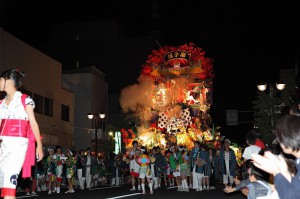八戸三社大祭 夜間運行 山車蒸気噴射